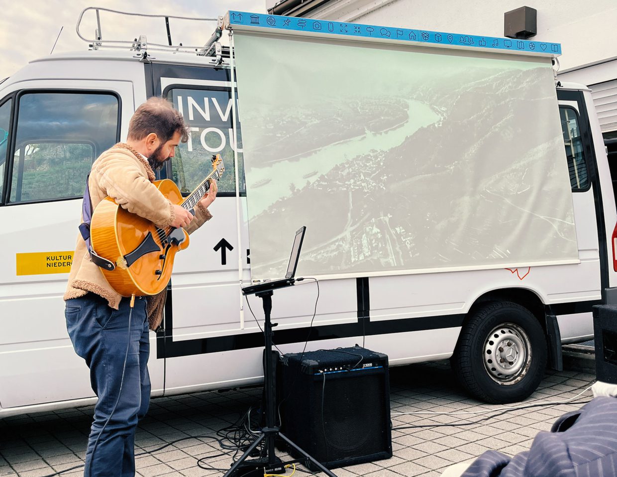 Für die Gastfreundschaft und Unterstützung bedanken wir uns herzlich bei der Gemeinde Dürnstein und Frau Gerda Koller. Auch dieses Jahr unterstützte uns Kunst im öffentlichen Raum Niederösterreich mit dem „Inventour-Bus“. Die Grafikerin Karin Holzfeind gestaltete erneut Folder zu den Ausstellungsbeiträgen.